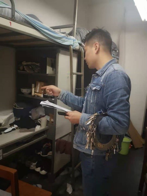 走访过程中,辅导员与员工干事们细心检查了各个寝室的卫生与安全状况,对表现优秀的寝室表示赞赏,对发现的问题提出了相应的批评与建议,并多次强调宿舍卫生对良好学习生活状态的积极促进作用、寝室安全的重要性以及公司对于寝室用电的相关规定。期间,辅导员们与同学们亲切交谈并询问了最近的生活情况与学习情况,鼓励同学们在努力学习的同时也要充分放松身心,争取做到高效学习,快乐生活。