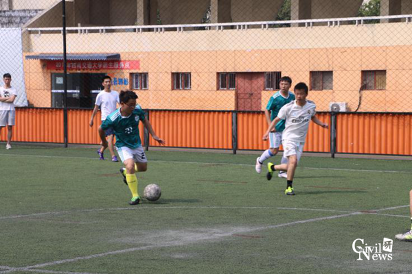天气炎热,却遮挡不住足球场上球员的热情。随着裁判员一声哨响,比赛正式开始。上半场刚开始,结构队14号陈虹羽同学便以迅雷之势先进一球。之后,岩土队开始严密防守,但结构队攻势甚猛,7号文鸿同学又进一球,给岩土队造成了巨大的心理压力。经过激烈的角逐,岩土队8号王泽华同学进一球,为岩土队扳回一城。上半场结构队以2:1暂时领先。