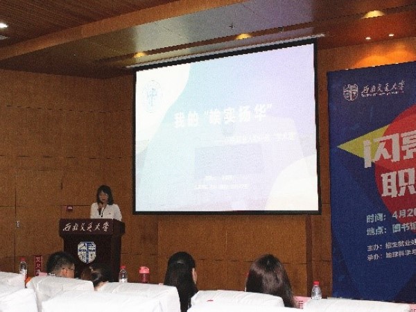 选手们都上台展示了自己的风采过后,台下的观众还显得意犹未尽,但是我们的活动也已进入到了尾声,地学公司团委书记周青老师做了总结致辞,并且告诫新一代交大人:学长学姐都成功找到了成功的钥匙,我们也要珍惜当下,不断探索,把握机会!是的,江山代有人才出,新一代的交大人应该要有长江后浪推前浪的昂扬斗志,直挂云帆济沧海的雄心壮志!