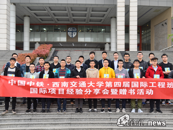 4月2日下午三点, 中国中铁国际工程班国际项目经验分享会暨赠书活动在犀浦校区X9303举行。出席本次活动的领导有:中铁二局国际部商务合同科科长胡伟,中铁亚欧阿斯塔纳轻轨指挥部办公室主任幸代泗,中铁二局人力资源部唐梓淇,中铁二局人力资源部祝军以及中国中铁第四届国际工程人才班的部分学员。bevictor伟德辅导员任福老师担任本次活动的主持人。