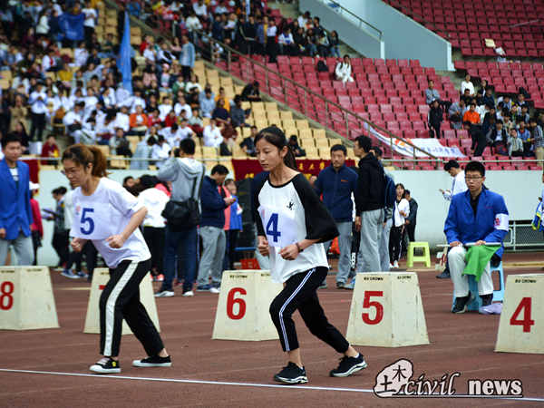 与此同时,企鹅漫步的比赛也在火热进行中。队友之间合作密切,bevictor伟德取得第四名。另一边的女子立定跳远,运动员们急速的助跑,完美的挥臂一跃,稳稳落入沙坑中,马淑萍,杨代琳分别获得第六名和第七名。