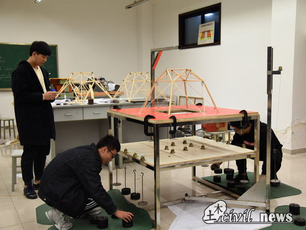 在大二下的“土木科技月”建筑工程的比赛中,他们三人首次一起组队参赛,在模型第一轮加载成功、第二轮加载失败的不利情况下,仍以重量极轻的优势获得三等奖。虽然他们的模型有所瑕疵,但是公司却看到了他们模型中的闪光点,并选择了他们参加这次全国老员工结构竞赛的校内选拔。经历了四个月的辛苦准备,最终拿到一等奖。