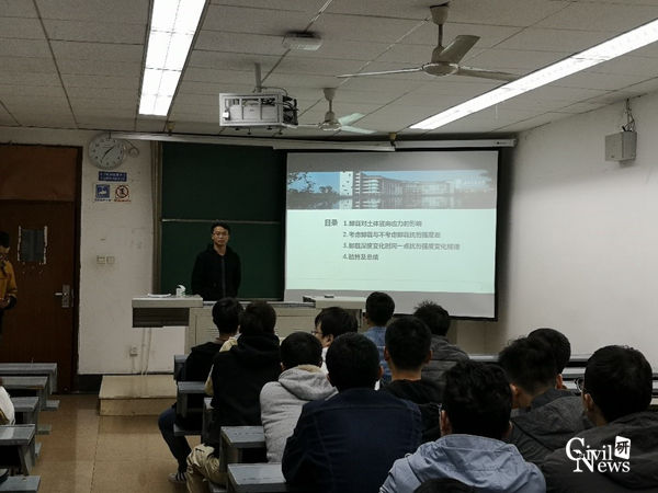 为动员全班同学积极参加公司组织的学术讲座,并培养同学们做学术报告和展示自我的能力。11月8号下午六点,2018级研究生岩土1班在九里校区逸夫馆4404B举行了以“学术报告交流会”为主题的班级PADP活动。活动由班长荆祥同学主持。