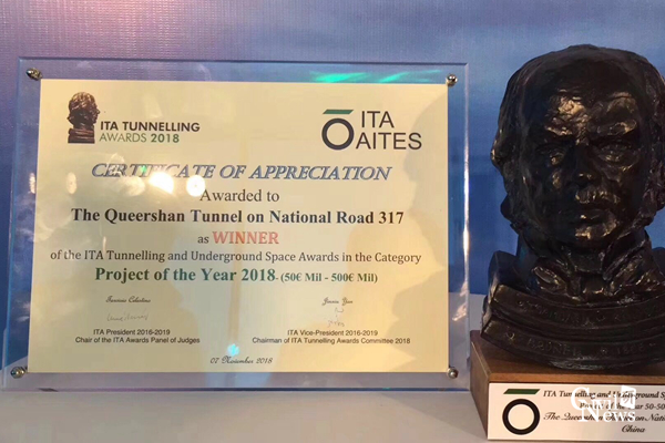 公司参与的雀儿山隧道获“国际隧道协会2018年度工程奖”