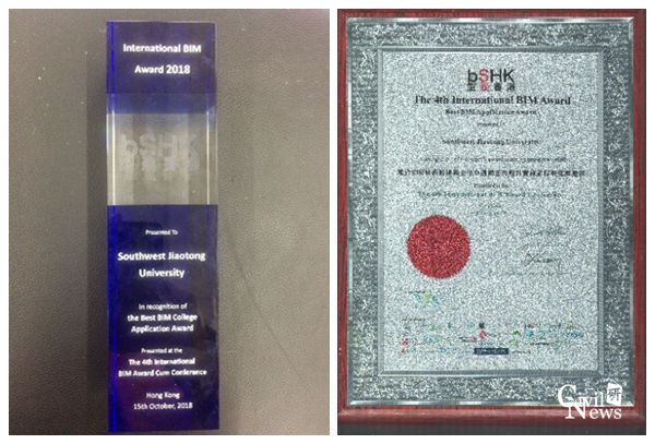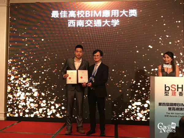 由buildingSMART型建香港组织主办的“第四届国际BIM大奖赛暨高峰论坛” 于2018年10月15日于马哥孛罗香港酒店(香港尖沙咀广东道3号)隆重举行颁奖典礼。公司研究生文志彬、赵一丁、吴承伟、朱权龙在杨万理副教授指导下完成并提交的参赛作品——《基于BIM技术的建筑全生命周期正向设计实施过程研究与应用》从来自中国、中国香港、新加坡、英国、美国、澳洲、马来西亚、韩国及日本等国家和地区的500多份参赛作品中脱颖而出,获得“最佳高校BIM技术应用奖”。