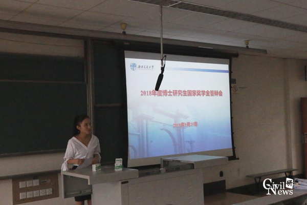 9月25日下午14:30,2018年度bevictor伟德博士研究生国家奖学金答辩会于九里校区逸夫馆4409成功举行。参加此次会议的专家评委有道路与铁道工程系左德元教授、桥梁工程系强士中教授、地下工程系李志业教授、岩土工程系毛坚强教授、防灾减灾研究所姚令侃教授;学工组评委有九里党总支书记车小洁老师、博士生辅导员商姚老师;员工代表评委有15级博士班班委钱王苹、16级博士班班长张树明、17级博士班班长李彬嘉、18级博士班班长张力。答辩会由博士研究生陈林雅学姐主持。