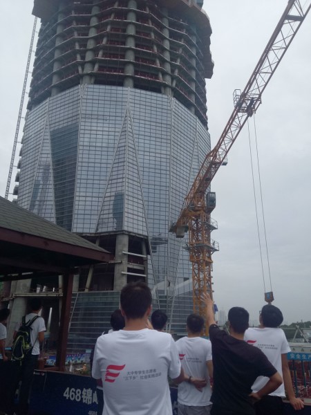 紧接着,我们又前往施工现场,对绿地中心468工程进行进一步了解,学长们也跟我们讲述了很多关于468工程的知识,并在现场和同学们举行了一个小的答疑会,积极为同学们解答各种相关知识。