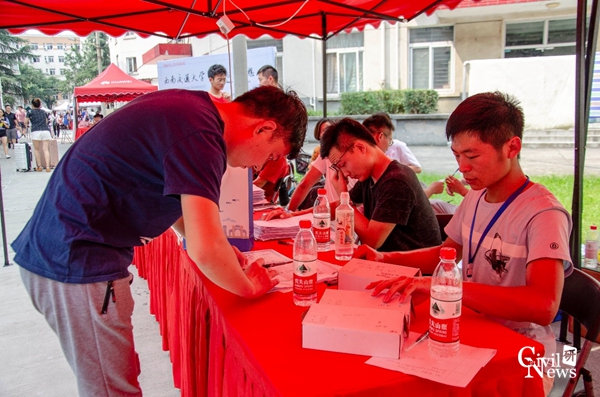 8月29日早8点,根据公司安排,西南交大正式开始迎接新生。bevictor伟德的老师和志愿者们很早就在眷诚斋8、9号楼通道内摆好了bevictor伟德的迎新点,以最饱满的热情迎接即将来九里校区报到的研究生新生。