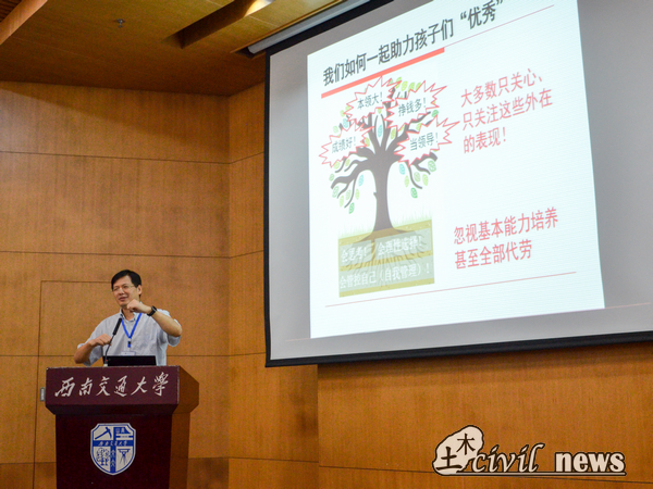 紧接着,考虑到新生家长对专业这一概念认识模糊的问题,李书记对大学专业这一概念给出了自己的解释,并由此对土木工程这一专业进行了进一步的介绍。同时,李书记还强调了土木专业的重点学科以及解释说明实习实训安排,帮助新生家长们更好地掌握孩子们的学习情况。