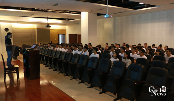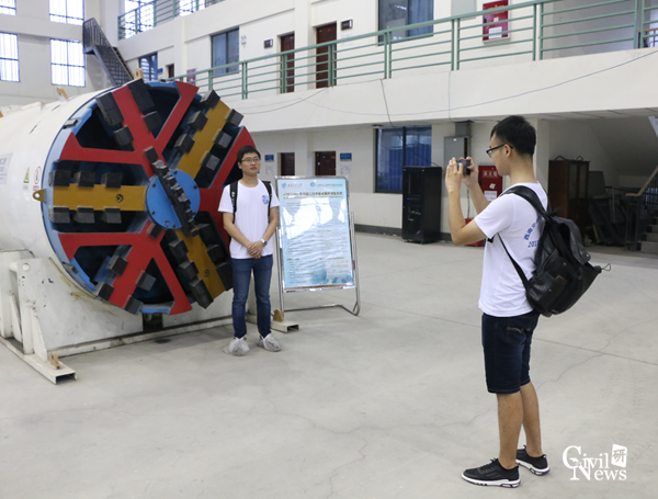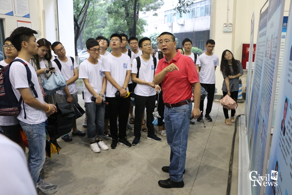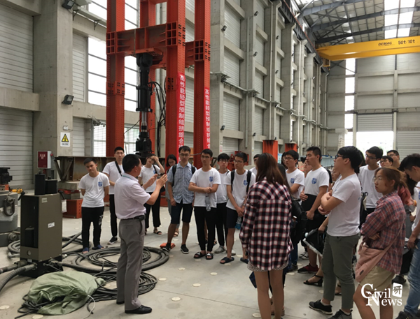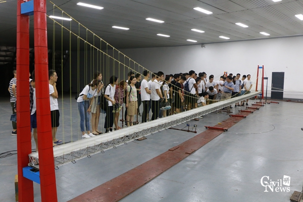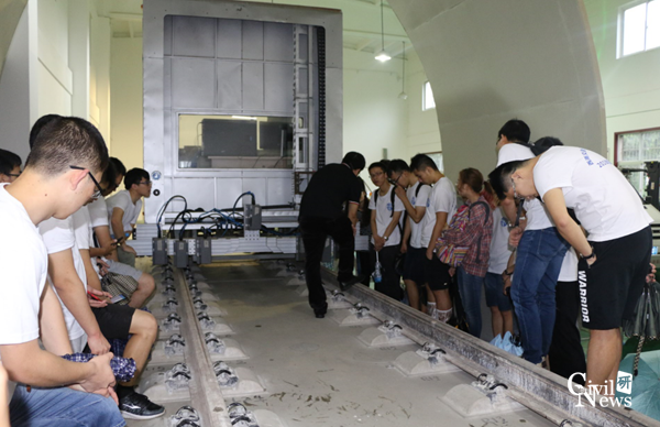 下午14点,全体营员乘坐校车前往犀浦校区参观。首先,大家来到雄伟壮观的犀浦校区图书馆。邓开来博士向大家详细的介绍了公司丰富的文献库和数据库,并简单讲解了数据库的基本使用流程,让大家对公司的图情系统有了初步的了解。随后,大家前往了陆地交通地质灾害防治技术国家工程实验室参观了亚洲最大的地震台系统,实验室邵长江教授热情的接待了同学们,并风趣幽默地向大家介绍了一组组大型模型试验,这让刚完成三年本科学习的营员们对结构抗震试验有了初步认识。最后,营员们来到世界第一大的边界层风洞实验室进行参观,正赶上桥梁系的研究生正在进行试验。营员们在王骑老师的带领下有序参观,积极提问。面对如此精美的桥梁模型,同学们纷纷拿出手机拍照记录。