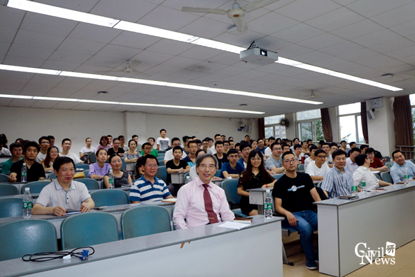 首先,陈根达教授介绍了无损检测、传感系统、成像系统、数据分析、爬升机器人、无人机(UAV)和3D打印技术的最新发展和潜在应用。其次,详细讲述了混凝土3D打印技术和无人机(UAV)技术在土木基础设施建设行业的具体应用情况及其对土木建设行业的改变;并针对现有的基础设施保护措施,阐述了如何将传感、成像系统及机器人整合到目前的视觉检测系统中,从而将传统的桥管理方法转变为以数据为驱动的桥梁管理方法。最后,陈教授针对近年自动化和信息技术在土木基础设施建设和维护中的应用和发展,指出了一些利用传感、成像、通信和计算机仿真工具来管理现有基础设施所面临的新挑战。陈根达教授的讲座内容丰富、理论和实践联系紧密,生动精彩、深入浅出,获得了全场师生热烈的掌声。