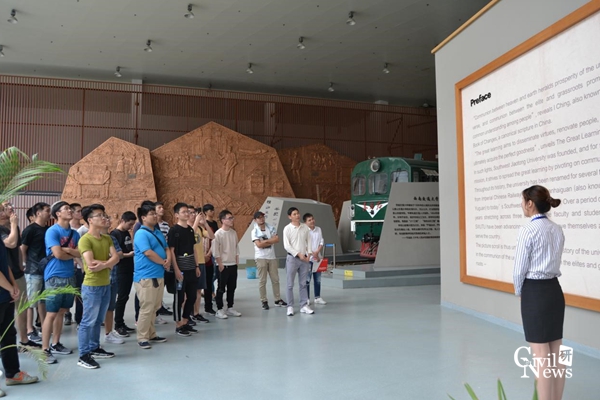 参观完毕,申玉生副教授介绍了为隧道工程领域多做出重大贡献的公司著名的专家、学者,以及他们为中国铁路、公路交通领域做出的卓越贡献,还有很多人仍然活跃在交通工程建设的一线。最后希望所有研究生能够读校史知校情做“五有”交大人,对即将踏上新的工作岗位的研究生能够以前辈、员工、学长为榜样,激励自己、鞭策自己、努力奋进,为中国的交通工程建设再上一个台阶而努力。