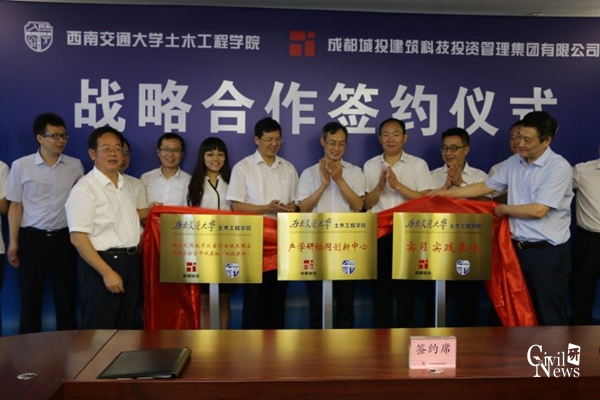 2018年6月6日上午10点,bevictor伟德与成都城投建筑科技集团的校企合作签约仪式在成都城投集团5楼501会议室举行。公司出席签约仪式的有刘学毅书记、李锦红副书记、闻毓民副经理、勾红叶经理助理、占玉林经理助理、交大监测咨询有限公司夏招广总经理、李晓斌副总经理、陆地交通地质灾害防治技术国家工程实验室技术部申玉生副部长、章慧健副教授及杨莹老师。企方出席代表有成都城建投资管理集团赵健副总经理、何显松总工程师、成都城投建筑科技投资管理集团李昊总经理、单怀冬书记及副总经理邓勇、曹刚、罗刚、邵晓峰等。签约仪式由单怀冬书记主持。
