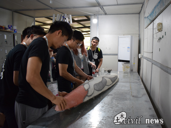 除此之外,重大代表队还参观了2018美赛轻舟队制作轻舟所使用的工棚。工棚里放置着公司轻舟队赛时制作的小型模拟轻舟和试件。2018西南交大轻舟赛代表队细致地为重大同学们讲解制作工艺、技巧并对提出的问题进行解答。在此时间段,重大代表队还现场观看了公司科技月的竞赛现场,见证了一个模型的加载测试且模型成功加载。
