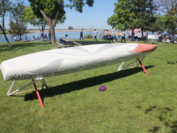 与钢桥队同行的还有西南交大第一支混凝土轻舟队。2018混凝土轻舟队队员共23人,其中邱钰峻、梁敏飞、王绪、文彦鑫、杨坤、许祉涵、骆丽茹、刘洋、龚振华、路桦铭、邓宇航、顾天宇、叶高宏、高子祁、苏佳琪、孙杨共16位正式队员赴美参赛。自2016年末组建至今,在何畏副教授和张锐老师的悉心指导下,建队一年半内完成了船型设计、混凝土实验和选配、养护室建造、外观设计、轻舟施工和养护、划船训练、设计书撰写以及模拟答辩等多方面的任务。最终,轻舟队筚路蓝缕,建造完成了交大第一艘足够承载四人的6米长混凝土轻舟。