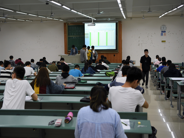 晚上六点五十,记者走进图学技能大赛的现场,近距离欣赏交大学子展现自我的风采。临近开考,教室里已坐满了前来竞赛的同学。在老员工科创中心同学们的组织下,同学们有条不紊的进行签到及对号入座,安静地等待考试开始。记者发现,在竞赛开始后,科创中心的工作人员逐个对尚未到场参加竞赛的同学进行电话通知,彰显了他们尽职尽责的精神。在此,记者在此也提醒各位同学关注比赛通知、了解竞赛时间并提前进行合理的时间安排。竞赛过程中,同学们或冥思苦想或奋笔疾绘,都在十分认真的答题,在方寸间挥洒智慧与风采。约过八点,便陆陆续续有同学提前交卷出场,这些同学多是带着胸有成竹的微笑离去,只留下一个自信的背影。