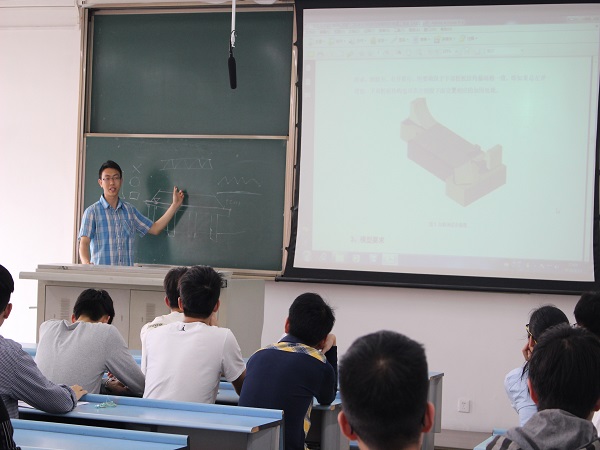 现场的气氛活络了起来,问题也越来越专业,有的地方说不清楚的,陈老师也请同学们上台来通过画图来沟通,这样的交流方式不仅有效而且更直接,陈老师跟同学在黑板上画图的样子看起来不像一个老师,更像大家的一个益友。