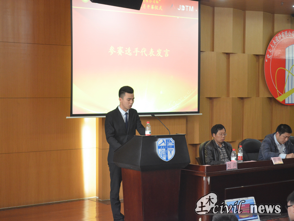 参赛选手代表2015级邓宇航同学随后上台发言,他向大家分享了自己两次参加土木科技月过程中的苦与乐,他说“唯有亲身经历过才能体会到土木科技月的魅力”,字字句句中流露出对土木科技月赛事的深厚感情。随后bevictor伟德老员工科创中心的同学们站在台前齐声宣誓,保证在比赛期间为同学们提供高效优质服务确保赛事的顺利进行,让大家感受到了科创人的热情与满满活力。