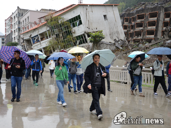 一路上,两位老师对于各种建筑物的损毁情况和损毁原因给我们进行了详细的讲解。在姚老师的讲解中,我们知道了地震中,建筑物常常是横向倒塌;一楼在地震中容易被剪断;混合结构在结构突变的地方容易发生结构破坏......