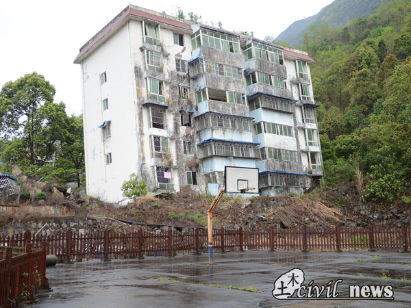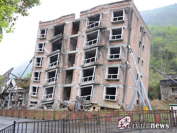 人员全部集中后,老师首先把我们带到了两幢建筑旁并给我们讲解到:“地震研究中发现:框架结构具有较好的抗震性,而砖混结构在地震中易遭到破坏。”确实,我们看到的两幢建筑中,砖混结构损毁较为严重。