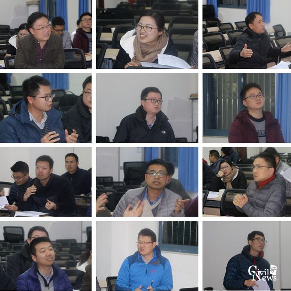 紧接着进入一起讨论环节,与会年轻教师们踊跃发言,干劲十足,纷纷表示对这次教师岗位聘任改革的支持,肯定了这次聘任改革对土木工程一流团队建设的重要性。章慧健、杨文波、叶华文、刘凯文、张锐、董唯杰、向活跃、程印、康阿真、王峰、张明金、周强、刘钰、胡辉、任东亚、许浒等十六位年轻教师各抒所见,从高水平论文分区、同一指标高质量替换、教学学时与工作量、提前超额完成指标、发明专利、支撑条件、平台使用、综合服务、如何促进成果最大化、35岁以后聘岗问题等方面提出了宝贵的建议。
