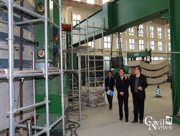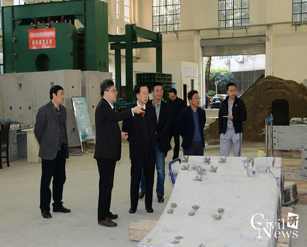 何川教授随后又向孙院士逐个介绍实验室正在进行的各试验的基本情况,参观到盾构原型试验时,孙院士也为之惊叹,并与何川教授就试验的原理、过程及方法等问题进入了深入交流。