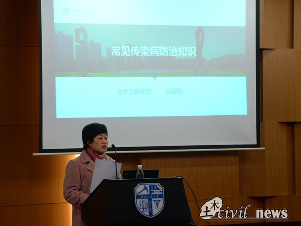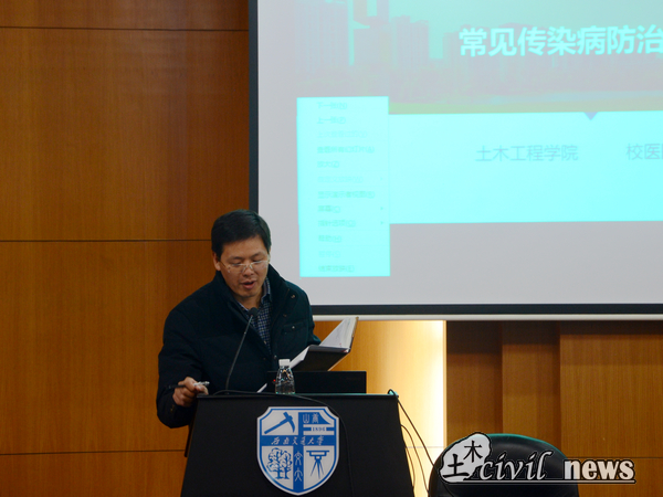 11月27日下午4点,犀浦校区图书馆二号报告厅举行了《传染病的防控》主题讲座,讲座的主讲人是犀浦校区校医院的唐医生。土木工程公司党委副书记李锦红、副教授蒋雅君与公司各级辅导员共同出席了这次讲座。