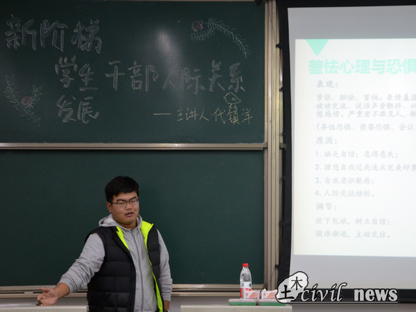 11月21、22日晚,团建中心组织的新阶梯成才“员工干部人际关系发展”课程展开了培训。课程的主讲人分别是:代镇洋老师、户佐康老师和罗鹏飞老师。此次的课程培训是为了帮助17级的员工干部和组织干事能在今后的学习生活中提升自身的人际交往关系水平。