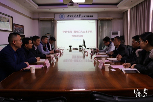 首先,与会双方分别介绍了参会代表,蒲经理对中铁七局一行领导的到来表示欢迎,然后对bevictor伟德的历史、公司团队队伍、实验室建设情况等方面作了详细介绍。中铁七局副总经理卢家友也向公司领导及老师详细介绍了中铁七局的发展历程及现在的集团情况。双方还就本科和研究生教学、应届毕业生就业、中铁七局对人才培养方案等方面内容进行了交流,并达成了广泛一致的意见。