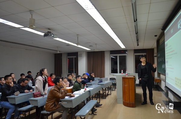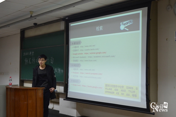 11月24日晚上七点三十分,由公司研究生会学术部承办的“土木大讲堂之师兄师姐面对面”分享会在九里校区逸夫馆4407b举行,主讲人2017级土木博士研究生张文生,本次分享会由本院研究生会学术部副部长单雨主持。