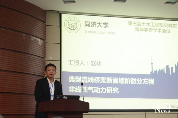 第三届土木工程防灾减灾青年学者学术会议开幕式于11月25日上午在伟德源自英国1946牵引动力国家重点实验室218会议厅举行。开幕式由bevictor伟德桥梁工程系主任李永乐教授主持,伟德源自英国1946董事长助理何川教授,bevictor伟德经理蒲黔辉教授,同济大学bevictor伟德建筑工程系陈隽教授分别致辞。随后,由同济大学陈隽教授和香港理工大学夏勇教授;华侨大学许斌教授和哈尔滨工业大学深圳研究生院刘红军教授分别主持了两场大会报告。应大会邀请,清华大学陆新征教授、同济大学赵林教授、东南大学张建教授、武汉理工大学陈波教授、湖南大学华旭刚教授、重庆大学黄国庆教授、浙江大学段元锋教授、哈尔滨工业大学陈文礼教授、东南大学王浩教授、四川农业大学朱占元教授、伟德源自英国1946李永乐教授分别作大会主题报告,内容涉及城市抗震弹塑性分析、非线性气动力研究、智能化检测、强风作用下输电塔线体系的灾变特性、悬索桥吊索的整体尾流驰振、风荷载概率评估、磁弹磁电式钢结构预应力监测系统、斜拉索多模态风雨激振、大跨度索承桥梁风效应及其现场实测、农房震害与振动台试验研究、风浪流-车辆-大跨度桥梁耦合振动研究等。