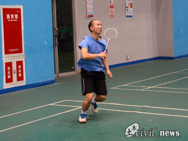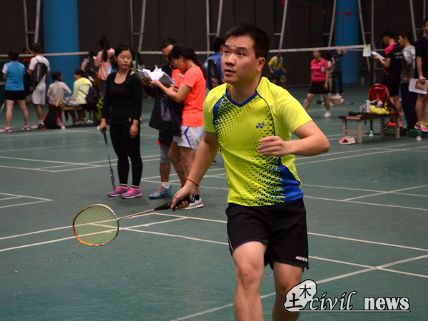 土木三队周强以2:0战胜图书馆羽毛球队李宁