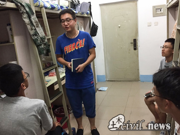 9月11日晚上,在公司党委的号召下,土木员工第五党支部开展了“党员责任寝室”活动。晚上九点半,所有党员在支部书记魏鹏儒的组织下进入2017级新生寝室,并按照对接安排与新生进行面对面的交谈。