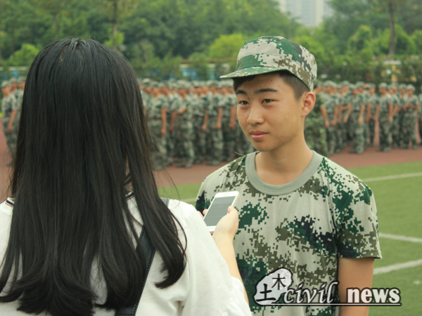 9月14日,2017级新生们在北区体育场内进行军训。在徐徐微风中他们昂首挺胸,挥洒汗水,为结业典礼做着准备。记者走进各营对土木新生们进行了采访。