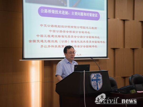 讲座共包含技术进展、安全与标准问题、主要因素分析和初步对策建议。赵副总工程师先后介绍了中国四大古桥和近代中国公路桥梁发展历史 “在发展道路上,我们一向都是博采众长、自主建设”,他如是说道。在提到我国各大优秀桥梁时,赵总以及在场老师同学的眼睛中无不闪烁着骄傲的光芒。