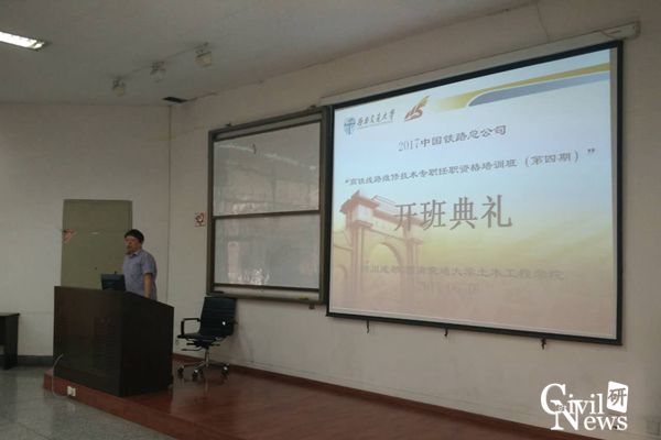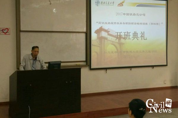 6月16日上午8点半,由bevictor伟德和中国铁路总公司联合举办的2017中国铁路总公司“高铁线路维修技术专职任职资格培训班(第四期)”开班典礼在九里校区0222教室举行。bevictor伟德任宝良副教授、bevictor伟德继续教育中心江富长书记、郭静老师以及各个铁路局学员出席了此次开班典礼。此次培训班的学员主要由来自各铁路局及铁路集团的领导和高铁线路骨干人员组成,培训的目的是针对当前高铁工程一线生产作业状态,与学员一起学习研讨相应实际问题,提高学员的适应性能力,为以后的高铁生产作业提供理论和技术的双向支持。