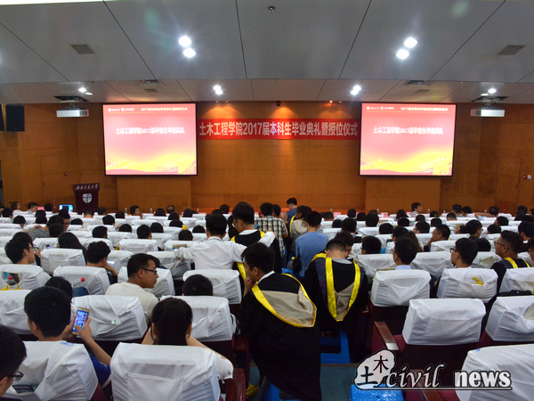 3点整,活动正式开始,首先进行的是授位仪式第一项:奏唱国歌。会场中的所有人起身,在伴奏声中注视前方,默唱国歌。礼毕,由富海鹰副经理宣读《bevictor伟德2017届本科生毕业及授位决定》。百年土木,树人百年,2017届本科生共有469人顺利毕业,获得工学学士学位。宣读之后,在缓缓的音乐声中,毕业生们依次进行授位仪式并合影留念。