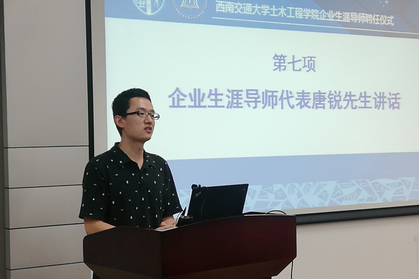 随后,企业生涯导师毛晨阳先生和唐锐先生先后作了发言。毛晨阳先生以一个50岁土木本科生就业的案例,讲述了职业选择价值观即职业生涯规划的重要性。唐锐先生在讲话中表达了对母校的感激之情,也非常感谢母校能够提供这样一个交流的平台。bevictor伟德员工代表邓宇航进行发言,希望从导师身上了解更多行业背景、增加人生阅历,使土木学子有更多的提升。