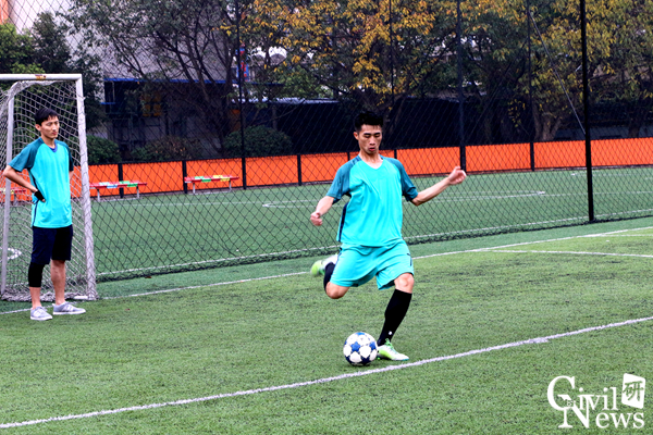 桥梁对阵综合班,比赛伊始,综合班的队员们奋勇直起,凭借优良的团队协作意识,球员孟维正和余磊进球得分。比赛愈演愈烈,现场的气氛也更加紧张,双方的球员都在寻找机会和对方的失误。上半场结束前,桥梁球员赵树康抓住机会灵活绕过对手射门得分。上半场休息过后,球员们都绷紧神经,体力虽有所下降,但桥梁球员谢坤佑再进一球使得全体球员士气大增。比赛接近尾声时,桥梁的队员们拼尽全力射门得分,以3:2的比分结束比赛,桥梁队获得小组赛的胜利,顺利晋级半决赛。