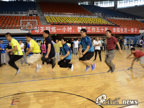 在开幕式后的早上9点整,首先进行了教工趣味长绳项目。不同于员工组的“8字形循环跳跃”的规则,教工组需要依次进入甩动的长绳,并保持六人同时跳动。比赛重点考察技巧和默契,两者巧妙结合才能得到好结果。参加的教工有着不输员工的体力和身手。他们经验丰富、乐在其中,即使中途不小心绊倒停下,也不气馁。比赛现场欢声笑语不绝于耳,气氛轻松而热烈。