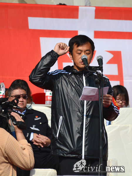 23个公司方阵全部入场后,全体人员起立,面向国旗,奏唱中华人民共和国国歌。随后公司党委副书记陈志坚教授致开幕词。他感谢了到场的嘉宾和全体师生,简述了公司体育成就,并号召同学们走出寝室,走出网络,参加体育运动。接下来,运动员代表代德伟同学和裁判员代表李宏图老师进行了宣誓。