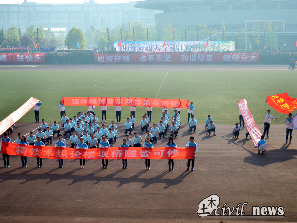 “知礼仪,严恪忠孝仁义,正衣冠;好读书,博览经史子集,能行文;强体魄,善赛足网排篮,身矫健;精技术,纵论楼坝桥遂,皆可修” 是土木学子百年来对自己的要求。在这一次的校运会上,土木方阵用热情让“巍巍交大,竢实扬华;百年土木,中流砥柱”的口号声响彻整个体育场。