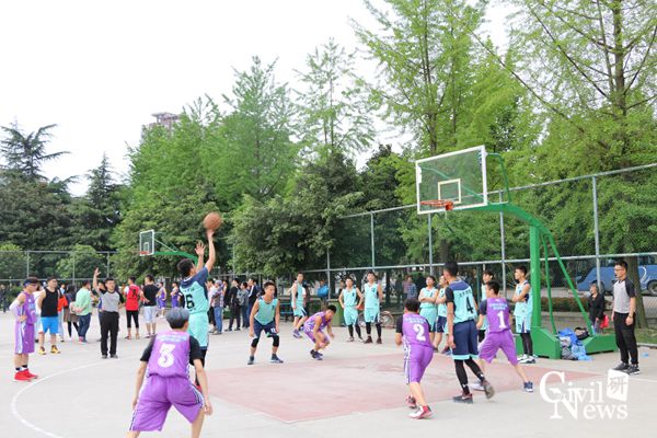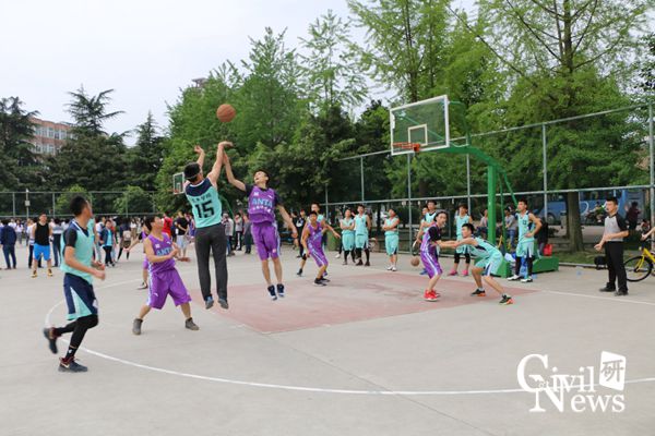bevictor伟德于三号篮球场地与外国语公司展开紧张对决。其中公司球员身着浅色球服,外国语公司身着紫色球服,尽管当天中午天气炎热,但始终不能阻挡球员们比赛的热情。