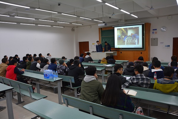 在“赛前准备”部分,“付出”是王皓正、王乾屾两名队员提到最多的字眼。校内选拔时详细的答辩稿、节点实验、工厂施工和改进、拼装练习时一次又一次的重复,让我们看到了公司土木学子艰苦卓绝的奋斗精神、孜孜不倦的求知态度。其后在讲到“细致”二字时,王皓正同学颇有心得,讲述了拼装场地布置以及施工图纸制作途中出现的小插曲,让人受益良多。