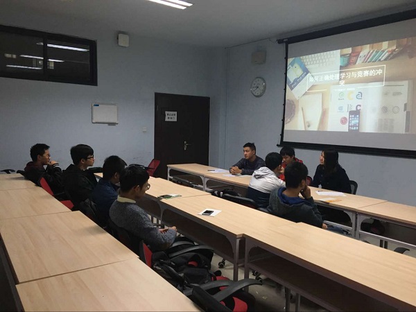 在活动中,学长学姐用他们的亲身经历向大三的同学讲解了以后的方向,为大三的同学今后选择保研或者考研还是直接工作指明了一定的方向,大三的同学踊跃提问,场面十分融洽,确实在大三这个时候,同学们不能再没有方向得盲目学习,要找好自己的定位,为自己以后的路做好充足的准备,要从自己的性格,能力,人脉多方面考虑找到属于自己的那个方向,并为之付出努力。大一大二的同学对于学业与竞赛更感兴趣,两位大神也提到了不少竞赛中所用的小技巧,在交流中在座的各位或多或少得了解了些许方法与途径。