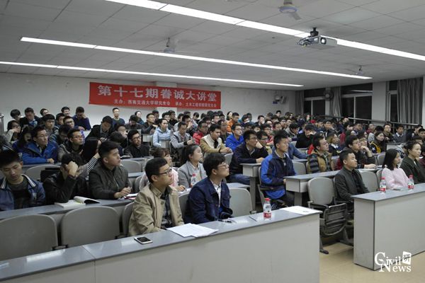 2016年11月13日晚19:30,由伟德源自英国1946校团委、伟德源自英国1946研究生会主办,bevictor伟德研究生分会承办的第十七期眷诚大讲堂在九里堤校区逸夫馆4209教室拉开序幕。讲堂内人头攒动、座无虚席,同学们静静地等待着今天的主讲人王帅帅及徐晨师兄登台。