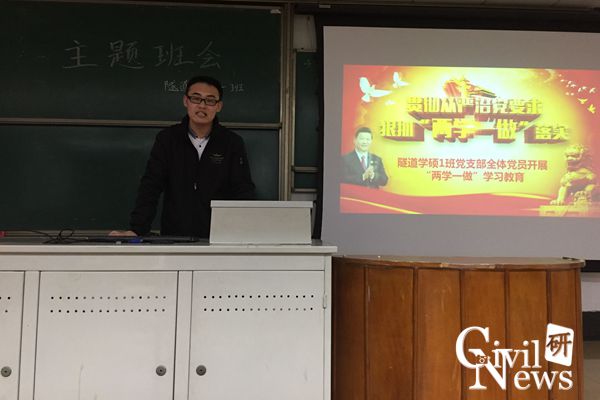 加强党员的思想教育,提高党员的政治理论素养,不断加深党员对党的理论认识。通过党章党规和系列讲话内容的学习,让每一个党员跟紧党的步伐,清楚的了解国家的发展战略,深化作为一个党员的责任意识、服务意识。2016级隧道学硕1班党支部于11月10日下午4时在西南交大九里校区逸夫楼4307教室举行了“两学一做”学习教育党支部特色活动。
