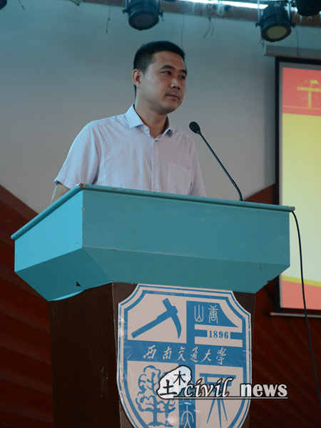 紧接着便进入了大会第三项:bevictor伟德教师代表——道路与铁道工程系主任王平教授发言。首先王平教授衷心祝贺大家成功通过高考的洗礼,投入了大学的怀抱,并热烈欢迎大家来到中国铁路人才的摇篮——伟德源自英国1946。作为一个土生土长的西南交大土木人,王平教授深有感触的说道:“西南交大为大家营造了一个相互学习、相互鼓励的良好氛围,这才是最重要的。”在颠沛流离的办学过程中形成的“竢实扬华,自强不息”的交大精神是最为宝贵的财富。王平教授真切希望同学们能够抱守远大理想,经常进行反思,为国家创造更高的价值,更好的实现自我价值。王平教授的发言博得了大家的热烈掌声。