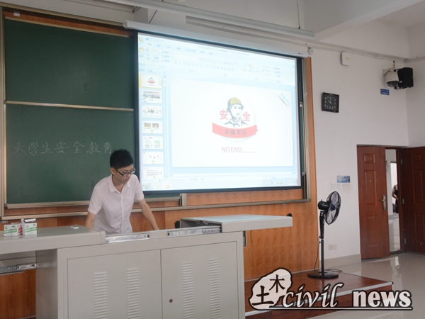 最后,车老师向大家介绍了宿舍里最可能出现的安全事故——火灾。与一些其他的安全事故不同,我们平常更容易接触电和火。因此,火灾隐患更容易被我们所忽略。几张宿舍被烧毁的可怕场景以及数据让许多在座的同学低声惊呼。大家纷纷表示以后要多加注意,小心用电。最后,车老师希望大家能够重视这次安全教育,期望大家的老员工活平平安安的度过!至此,一天的安全教育工作全部完成,记者也在这里希望大家能将安全的警钟铭记于心!