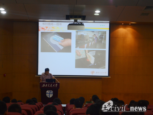 “图书馆是大学的心脏。”主讲人以前任哈佛大学董事长的名言作为全场讲座的开篇语,确确实实突出了图书馆对一所大学的重要性。“传统高校图书馆只是一个为学习、研究提供资料的物理空间,”主讲人分析道,“而新型高校图书馆是一个文化中心、信息中心和交流中心,它无疑是大学最重要的组成部分之一。“随后,他还为同学们展示了唐山交大图书馆旧址的照片,古今对比,叫人感慨颇多。